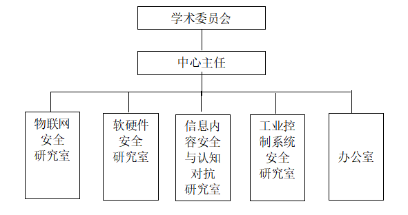 工程实验室实行学术委员会领导下的实验室主任责任制。设立学术委员会、中心主任、办公室和4个研究室。其基本构架如下: