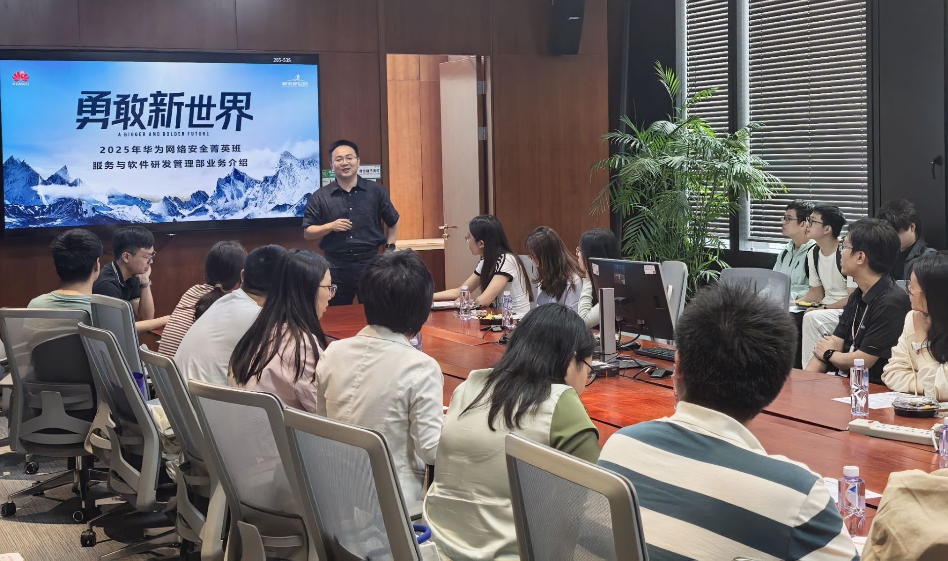 GTS网络安全与隐私保护工程技术专家胡铭铭,为同学们详细讲解了2025年华为服务与软件研发管理部网络安全菁英班的课题设置、培养模式、目标及发展规划,让同学们对网络安全进阶学习与未来发展有了更直观的认知与参考。紧接着,已入职服务与研发部的马慧、李婷,以上届菁英班优秀实习生身份分享实习经验。