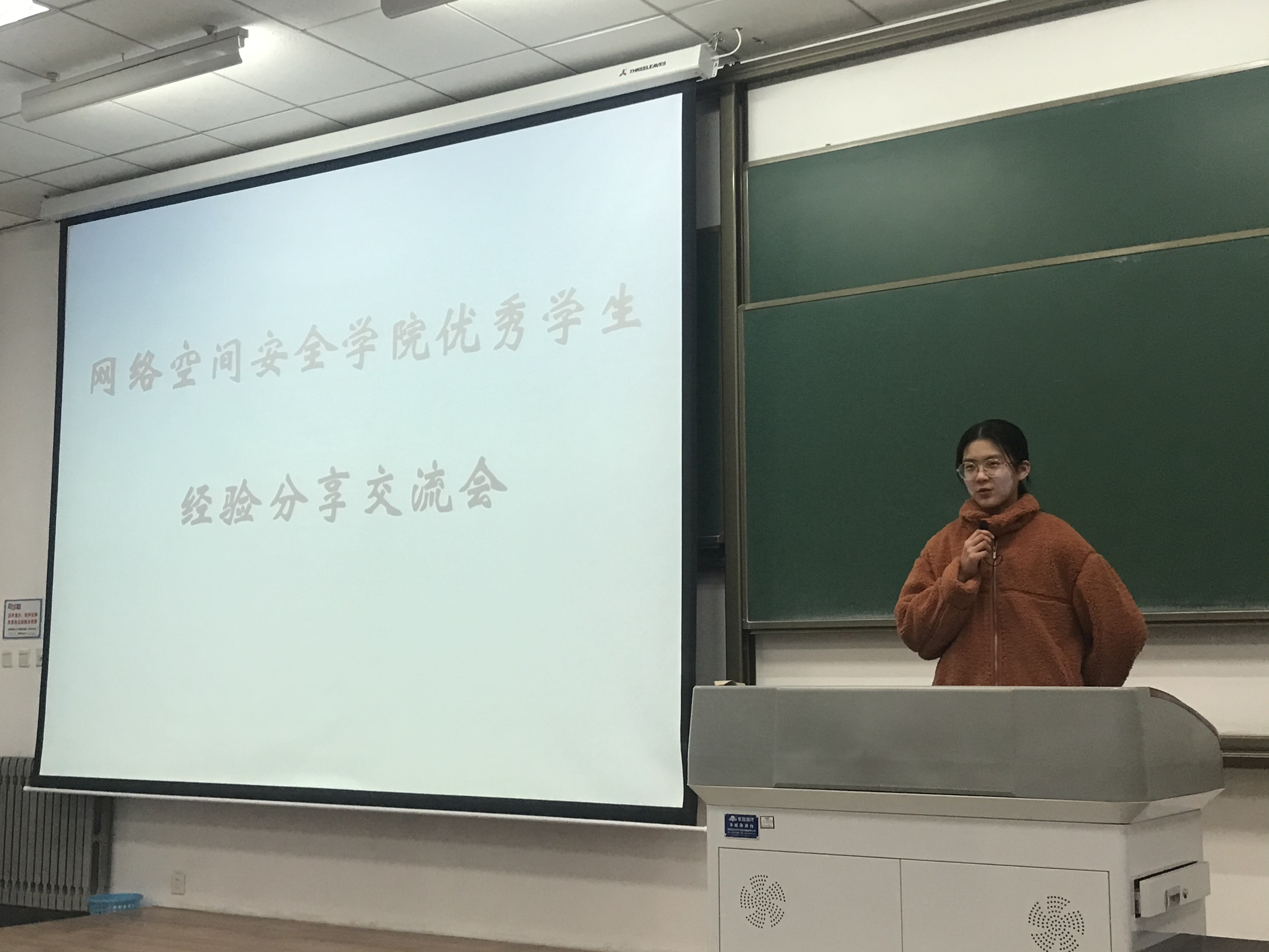 2017级的高丽同学结合自身经历,从基地、竞赛、科研三个方面为大家讲述了自己的经验,她讲到学校设立了足球机器人、舞蹈机器人、ACM、智能车、节能减排等基地,开展了数学建模、CTF等竞赛活动,大家可根据自己的特长和喜好选择加入,如果不知道自己想做什么,可以多加尝试,在不断尝试和学习中找到兴趣点并不懈为之奋斗。在分享的最后,高丽同学提到“学分积虽然重要但不是全部,我们应该学懂学透彻专业知识,做到灵活运用”。