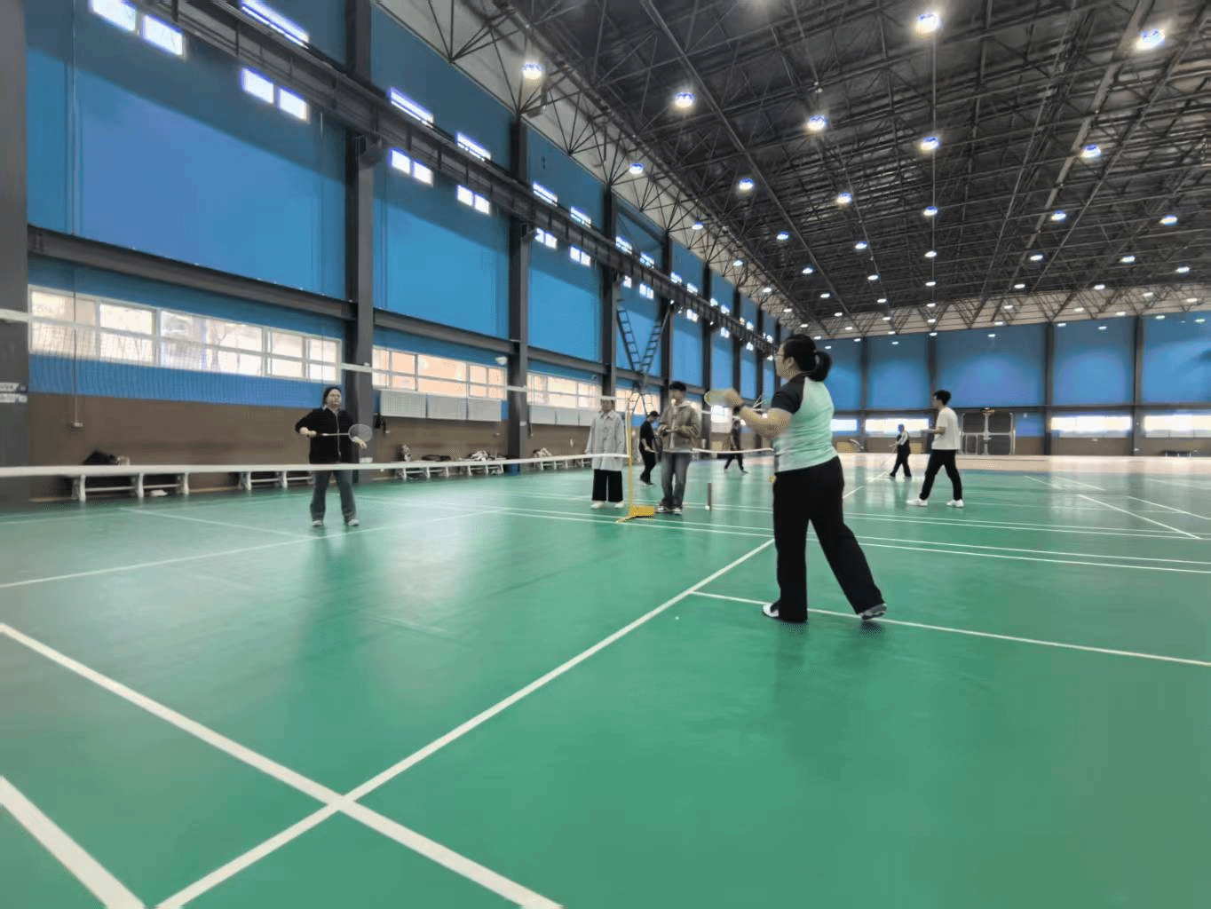 东篱菊苑体育馆内正式打响。该项赛事采用每局15分制,分为单人赛和双打比赛。方雪老师和张怡晨老师也参与了这次比赛。其中混合双打中的师生合作最具看点,师生同台合作竞技,比赛分工协作的同时又蕴含着浓浓师生情谊。