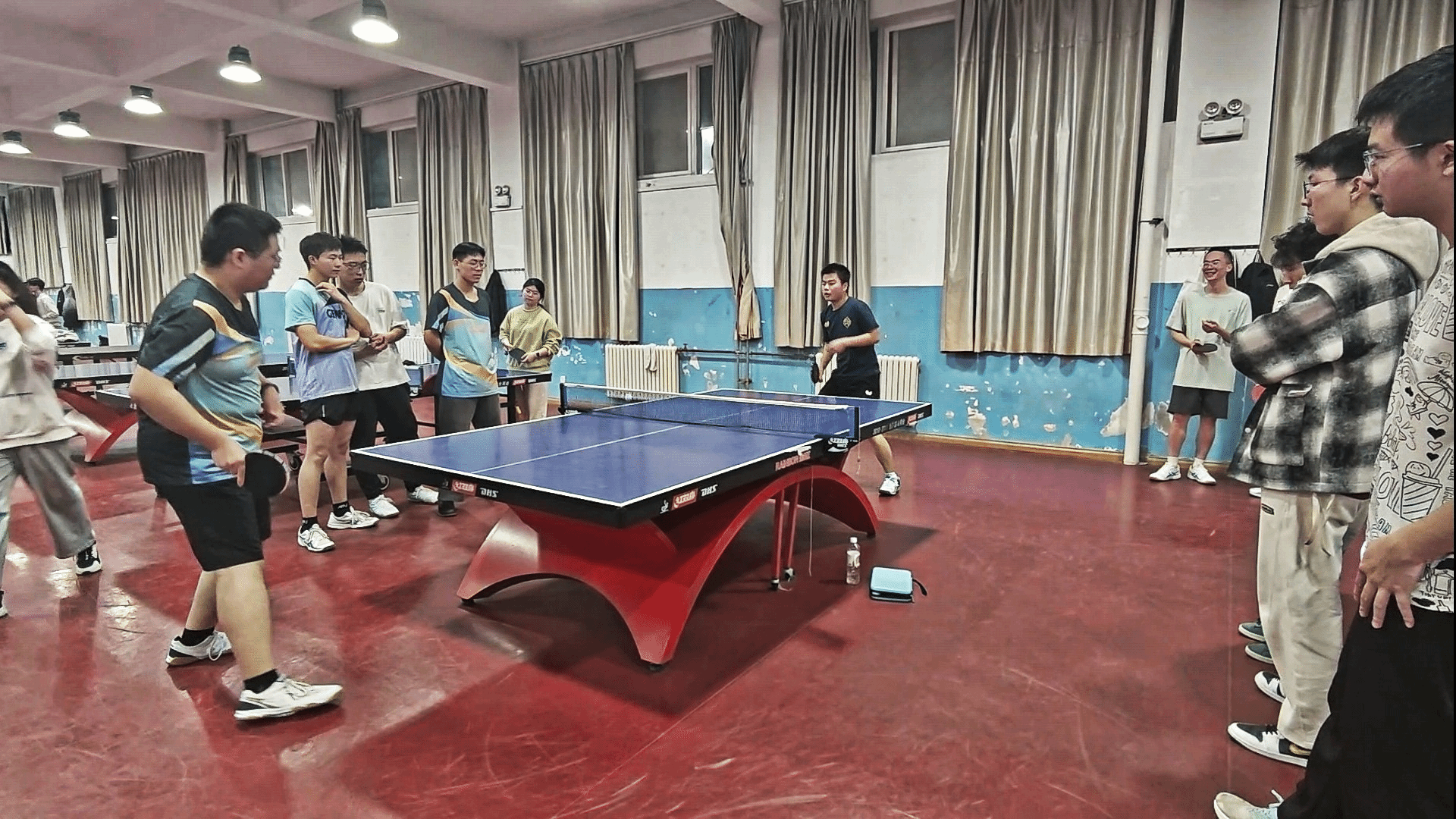 傍晚19时,乒乓球单打淘汰赛在长安校区乒乓球馆如约举行。该项赛事采用11分制,三局两胜,男女同组竞技。赛事精彩纷呈,选手们舞动着手中的乒乓球拍,在一方球桌上大放异彩。直拍横打如电,内挑打与快搓压制,乒乓球在球网上空画出一道又一道靓丽的弧线。