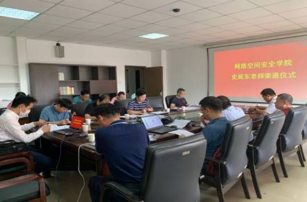 王高祖书记在会上介绍了史延东老师在教书育人、立德树人、科学研究、社会服务等方面做出的突出贡献,赞扬史延东老师发挥了网安学院“传帮带”的优良传统,加速了青年教师的快速成长。