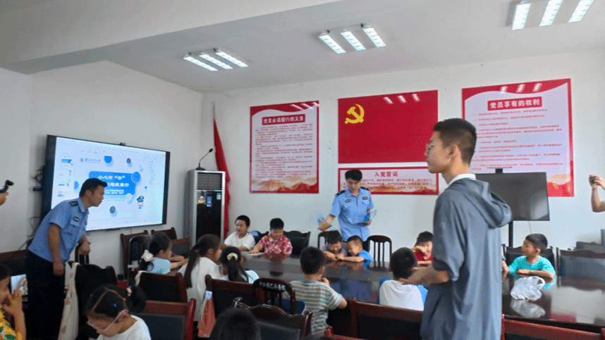 7月10日上午,实践队走进杨家河镇社区服务中心,面向当地留守儿童开展了一场以反诈为主题的趣味活动。此次活动得到了镇巴县杨家河镇副书记张慧杰、当地派出所民警以及生态环境学院实践队的鼎力协助。