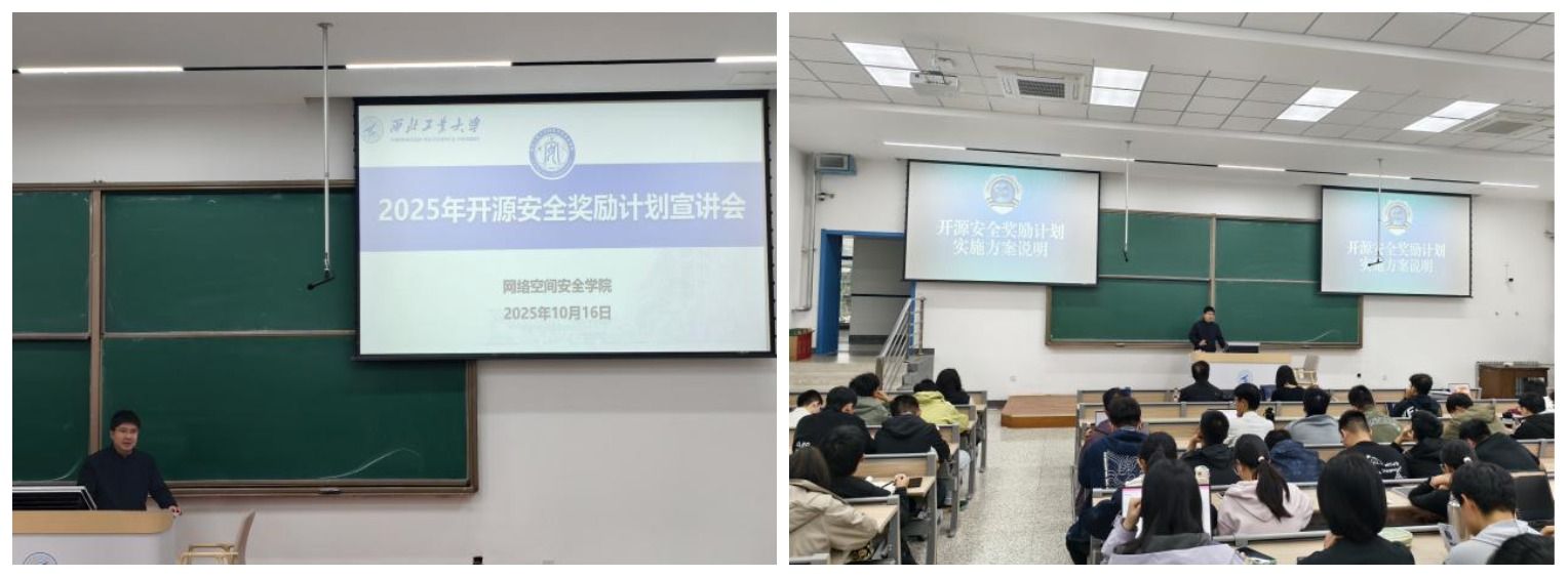 于10月16日在长安校区举办了“2025年开源安全奖励计划”专场宣讲会。两百余名师生参加了此次宣讲会和互动交流环节,现场气氛热烈。