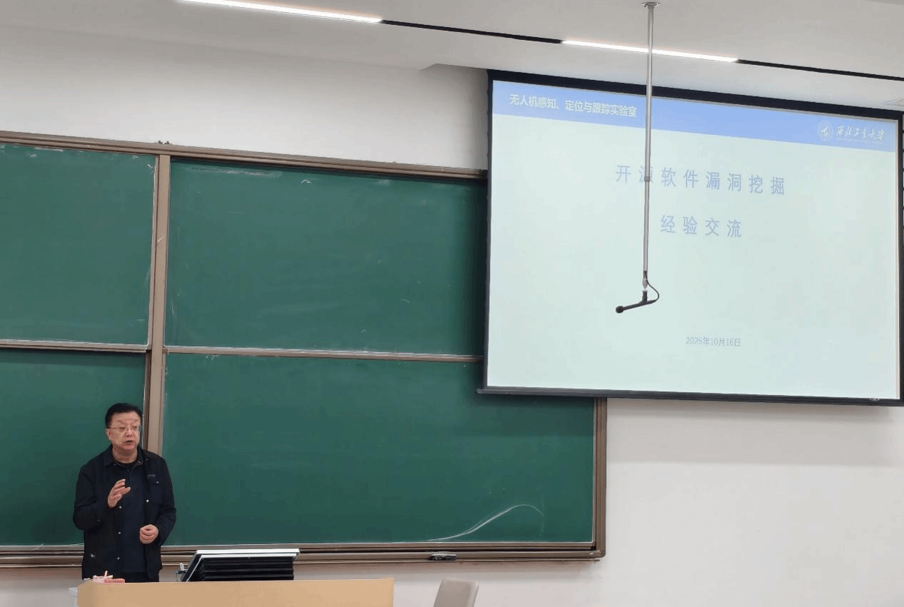 上届开源安全奖励计划的优秀指导教师郭达伟,以现实案例为切入点,系统梳理了白盒、黑盒与灰盒三种测试方法的核心差异,借助清晰的流程图逐步拆解测试基本流程,将复杂概念拆解为易懂内容,实现深入浅出的效果。最后,郭教授通过分享一个无人机漏洞挖掘和利用的精彩案例,动态呈现了无人机飞控系统的自动化模糊测试全过程,让同学们对开源软件漏洞挖掘的重要性形成了更直观、更深刻的认知。