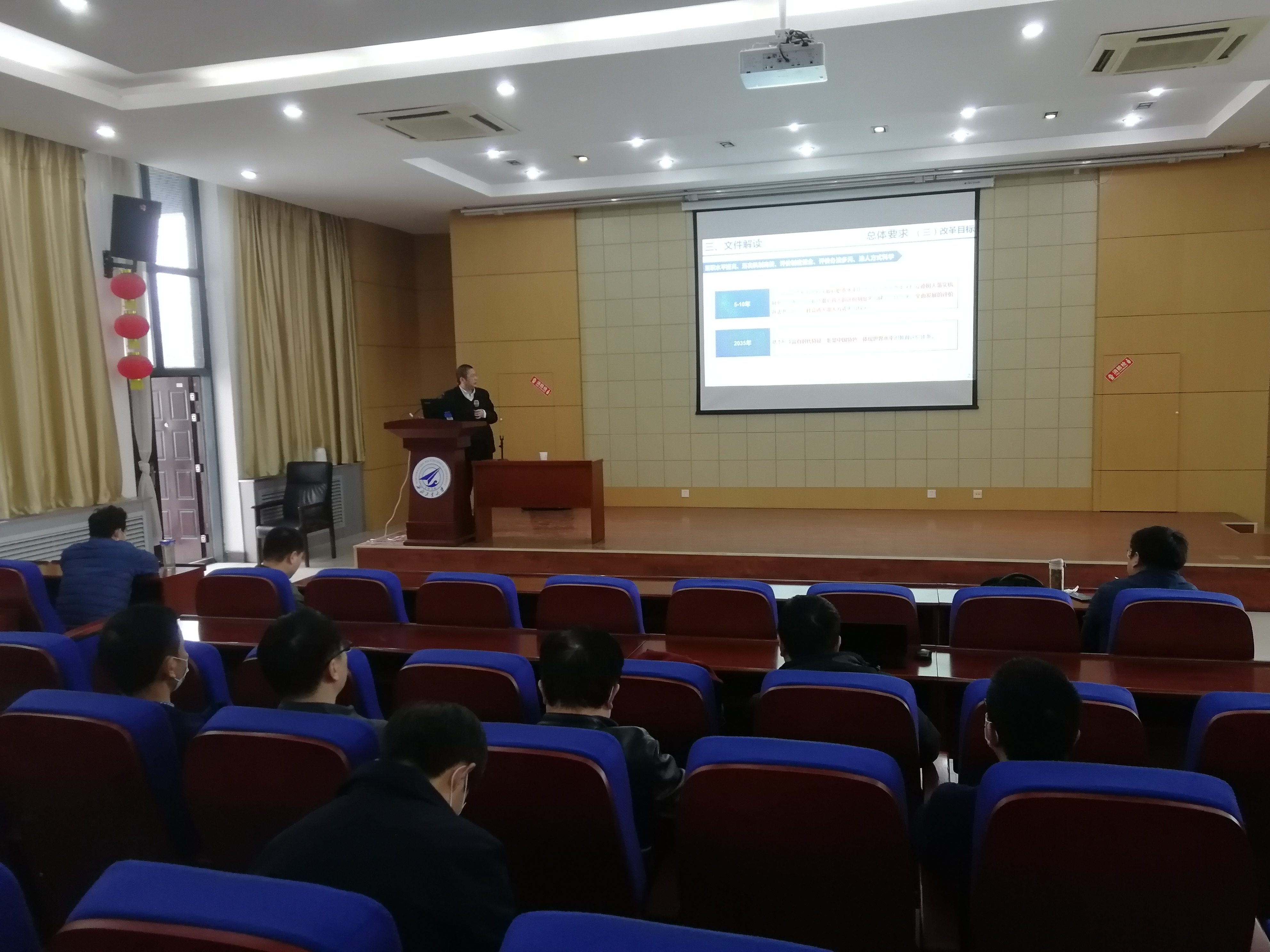 会上,常务副院长张盛兵从改革的要义、本次改革方案的内容及特点、文件解读以及学校关于落实《深化新时代教育评价改革总体方案》工作安排等方面进行了详细讲解。他强调,全院教职工要深入学习领会新改革方案的要义,准确把握“为什么改”、“改什么”、“怎么改”;他指出要坚持把立德树人作为根本任务,以破“五唯”为导向、以五类主体为抓手,全院上下要按照新的改革方案对标对表,结合学院“十四五”规划,加强“破”与“立”的改革举措,努力构建学院发展新格局。另外会上还传达了本年度学院在人才培养、科学研究、师资队伍、国际合作、社会服务以及入驻太仓方面的重点工作安排以及近期研究生复试相关工作。