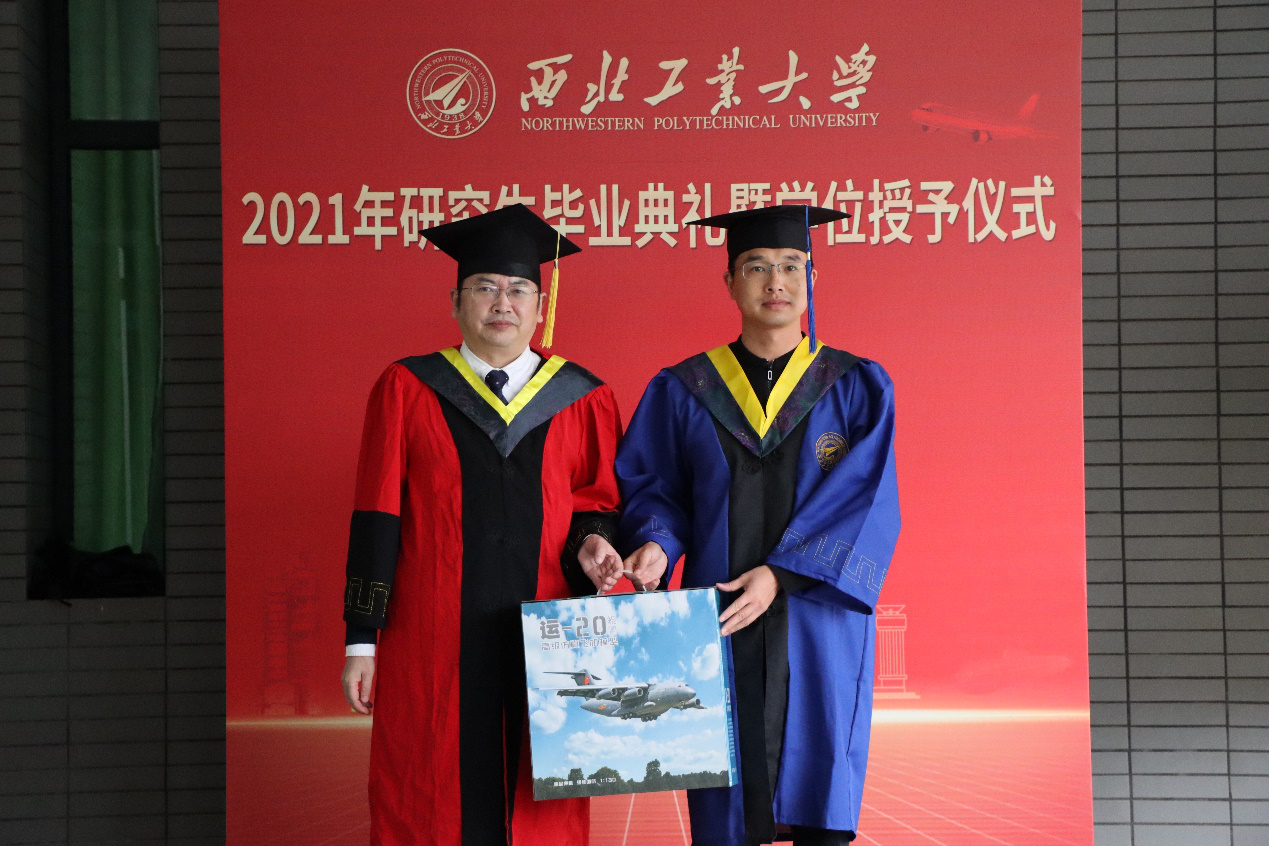 学位授予仪式上,常务副院长张盛兵、副院长刘志强分别为每位毕业生颁发了学位证书、拨穗。随后张盛兵副院长为每名毕业生发放了具有西工大特色的纪念品。