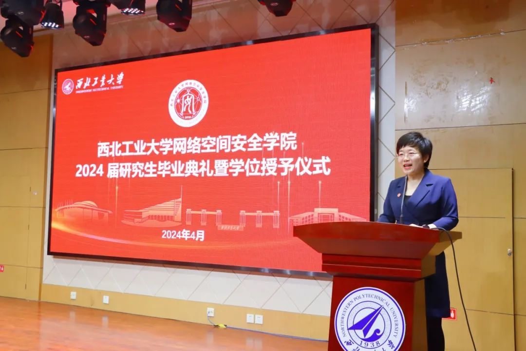 导师代表胡伟教授对即将毕业的同学们表达了最诚挚的祝福,并从“铸剑南山之下”“师出西岳之巅”“翱翔寰宇之内”“网安天下之际”四个方面表达了对2024届毕业生们的肯定、赞美、鼓励和希望。勉励大家始终牢记没有网络安全就没有国家安全。西工大网安院永远是大家共同的家园,欢迎大家常回家看看。