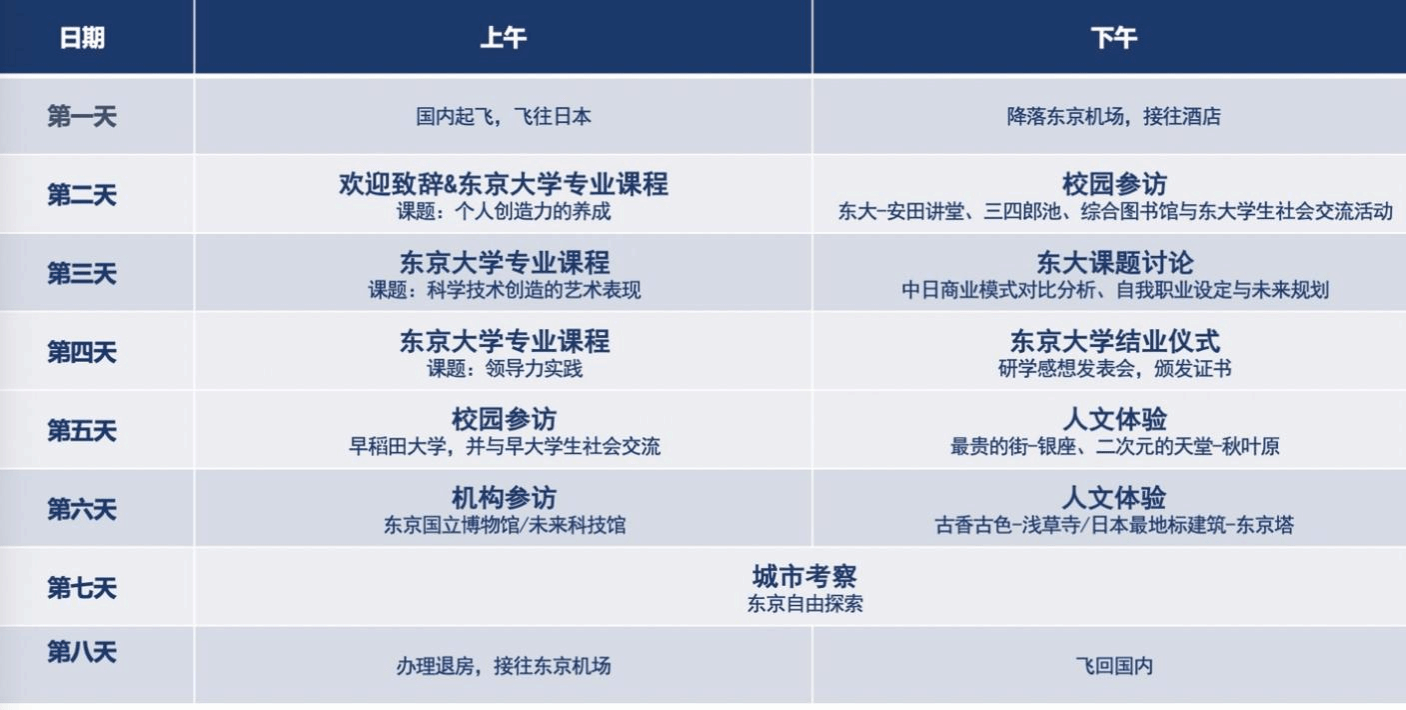 费用包含:大学课程费、大学管理费、企业机构参访费、校园参访交流费、住宿费、境外大巴费、保险费等。