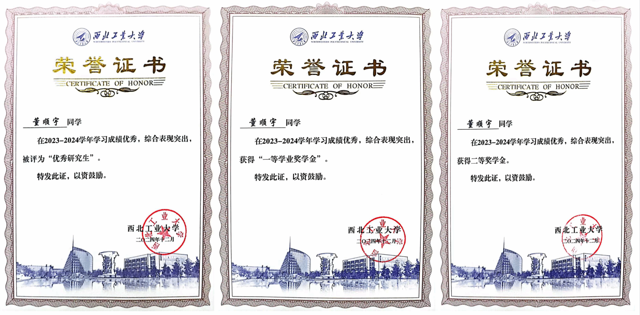 在学术研究和综合能力的全面发展下,董顺宇凭借优异的表现,多次获得各类荣誉和奖项,充分体现了他的专业素养和科研能力。