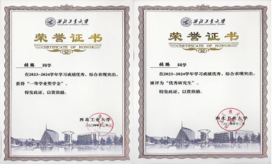 “优秀研究生”荣誉称号,并获校级奖学金。