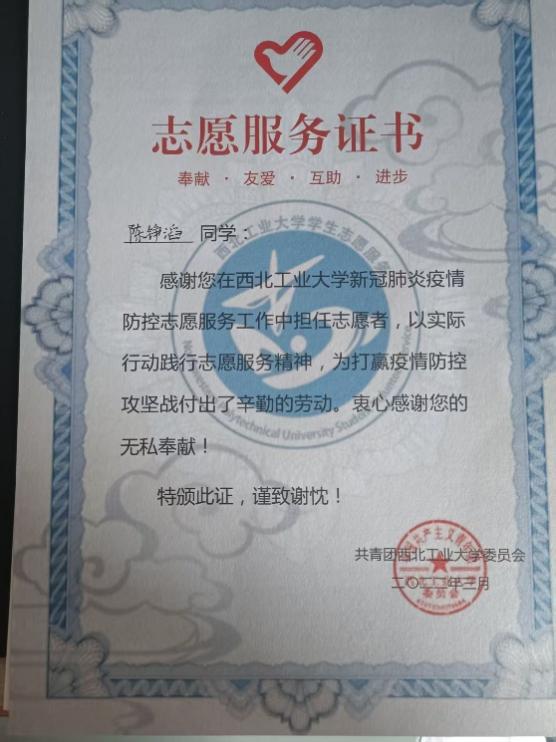 球场之外,陈铮滔同样是一名有温度的实践者。他参与了第三期“安守四方”反诈公开课,利用网络平台为广大群众普及反诈知识;2022年参与学校疫情防控志愿服务,奔赴一线,协助秩序维护与信息登记;2023年,他投身“心筑烛梦”第七季线上支教项目,为广西融水的乡村孩子带去温暖与知识;同年,还在陕西省中小学生航空设计挑战赛中担任志愿者,获评“优秀志愿者”称号。他用脚步丈量责任,用心灵传递光热。