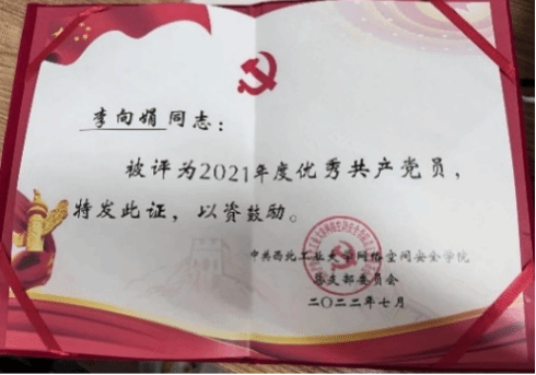回顾求学历程,李向娟始终坚信“道阻且长,行则将至”,这份信念鼓舞着她在困难面前不屈不挠,勇往直前。她深知,作为西工大学子,不仅要具备扎实的专业知识,更要具备高尚纯洁的品德和勇于担当的精神。现在,她即将走上中国航天科工集团某研发部的工作岗位,将始终坚定理想信念,时刻牢记母校“公诚勇毅”校训和“三实一新”校风,不断提升能力水平,用行动彰显担当,在推进中国式现代化的新征程上贡献西工大网安人的力量!