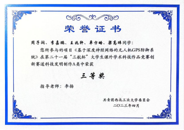 直博深造。本科期间学业成绩位于专业前列,并多次参加文体活动、学科竞赛等,力求成为一名全方面发展的西工大网安人。