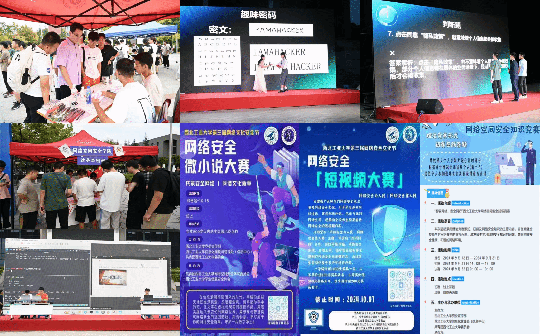 网络安全文化节于每年九月开幕,旨在深入贯彻落实习近平总书记关于网络安全的重要指示精神,积极响应国家网络安全宣传周战略部署,提升广大师生的网络安全意识与防范能力。通过形式多样、内容丰富的活动,如安全短剧、才艺展示、知识竞答、互动游戏等,文化节不仅增强了校园网络安全文化氛围,还推动了网络安全教育的实践性和互动性,助力构建产学研深度融合的网络安全生态体系,引导学生肩负起为国铸剑的使命,服务国家网络强国战略。