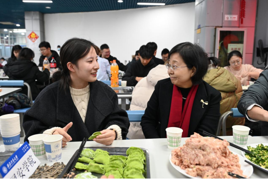 12月31日下午,学院80余名师生代表齐聚云天苑一楼餐厅,开启了迎新年包饺子活动,学校副校长张艳宁、学院党委书记张文涛、院长王震、副院长刘家佳、副书记杜瑶、教授代表毛伯敏以及学工干部来到学生中一同包饺子,共庆新岁。大家从包饺子的心得体会谈论到各自家乡饺子的不同特色,处处洋溢着欢乐祥和、温馨有爱的新年氛围。