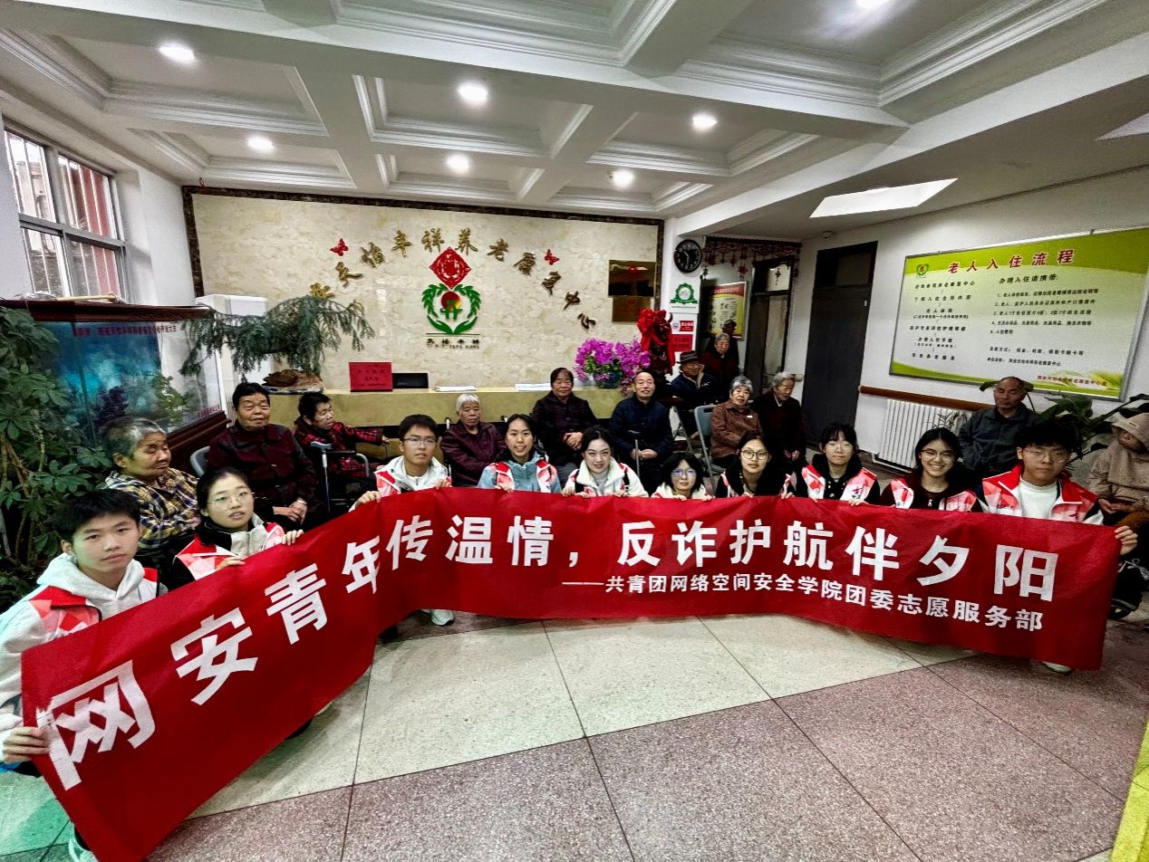 委员会志愿服务部组织12名志愿者走进西安天怡丰祥养老康复中心,开展了“网安青年传温情,反诈护航伴夕阳”活动。