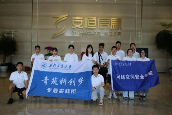 “访龙头企业,探信创未来”暑期社会实践队在院团委书记朱丹的带领下,前往杭州安恒信息技术股份有限公司调研实践,此次实践旨在使在校大学生近距离接触行业前沿技术,拓宽认知视野,提前做好职业生涯规划。