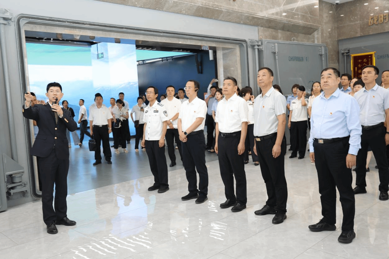 仪式结束后,全体人员在讲解员的引导下参观了西安人防科普教育馆。作为西安市唯一的人防主题科普教育馆,该馆通过“居安思危”、“长空之危”、“永宁之盾”等七大主题展区,结合丰富的互动体验设施,系统普及防空防灾知识,有效提升公众的应急防护能力。