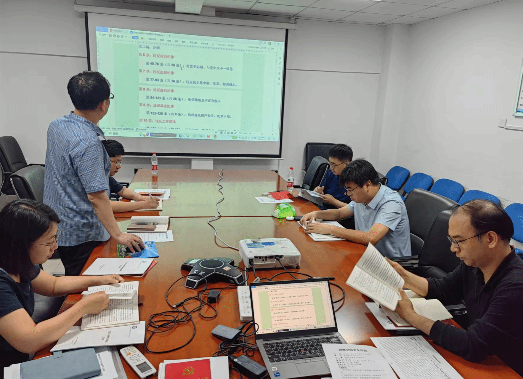 党委领导班子党纪学习教育专题读书班实施方案》,提出了参加读书班的总体要求。本次读书班分为4个阶段,采取个人自学、集中学习和交流研讨相结合的方式,系统学习《条例》和《习近平总书记关于严明党的纪律和规矩论述摘编》。随后,张文涛从《条例》总体框架上进行了分析领学,带领与会人员原原本本通读了《条例》第一章和第二章,并谈了自己的认识体会。他指出,《条例》共3编11章158条,系统规范了党纪处分的适用范围、总体要求、运用规则及违反党的六大纪律的处分方法。大家首先要从整体上把握《条例》的总体框架,从逻辑上理解《条例》各编和各章之间的关系,采用总体把握、逐条细学、融汇贯通的步骤开展学习,这样才能更好把握各编各章和各条的适用原则和具体规范。接着,中心组成员胡伟和王海洪两位同志结合自己的工作和学习体会作了重点发言。