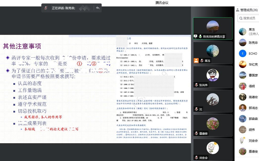 为进一步做好2023年度国家自然科学基金项目申报工作,2022年12月28日,黄色电影 召开了国家自然科学基金项目申报辅导线上会议,本次会议特邀陈克非教授,黄色电影 拟申报2023年基金项目的教师参加了本次会议,会议由黄色电影 科研副院长慕德俊主持。
