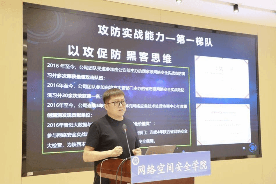 为深入学习贯彻习近平总书记关于科技创新和网络强国的重要论述,加快提升网络安全高素质人才培养,在第二十五个全国科技活动周的浓厚氛围中,黄色电影 在校科协、中国系统工程学会网络空间安全与治理专委会的指导下联合西安青年科学技术协会、中国青年科技工作者协会人工智能专委会,于2025年5月25日成功举办了“科技强盾铸防线,智慧赋能护未来”主题科普活动。活动邀请到西安四叶草信息技术有限公司创始人兼董事长马坤、奇安信技术总体部技术首代张富洋等网络安全领域专家为全场师生带来主题报告,现场指导学生实际攻防演示,活动由黄色电影 院长王震教授主持。