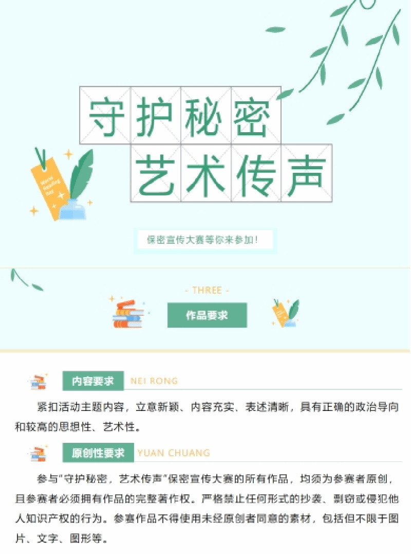 保密教育是国家安全教育的重要组成部分。在保密宣传月期间,学生会联合学校保密处开展保密主题艺术创作大赛,鼓励同学们通过绘画、摄影、短视频等多元形式表达对国家秘密保护的理解与支持。这场创意活动不仅为同学们提供展示才华的平台,也是一堂生动的国家安全实践课程,有效增强了保密意识、责任意识和国家安全观念。