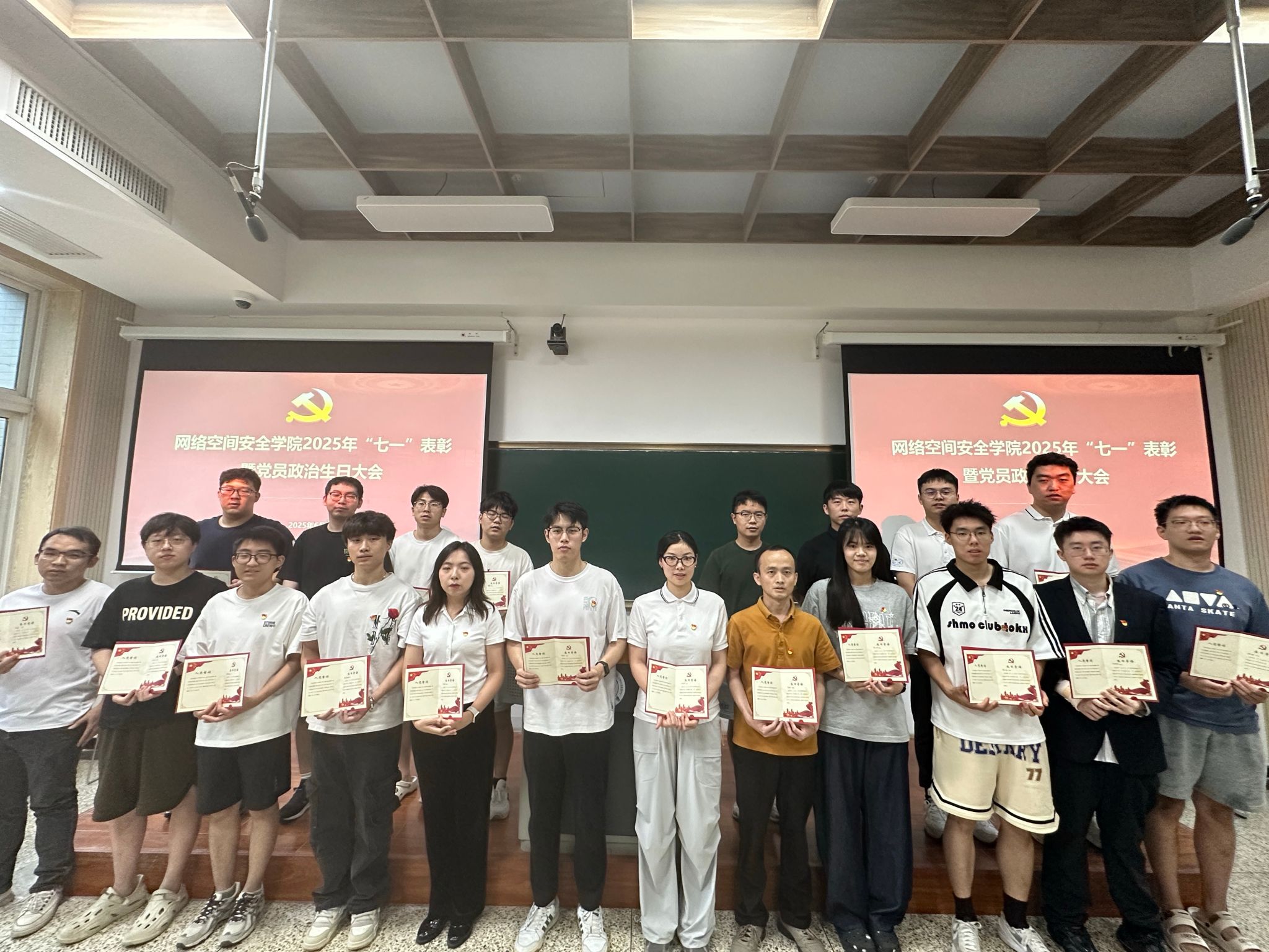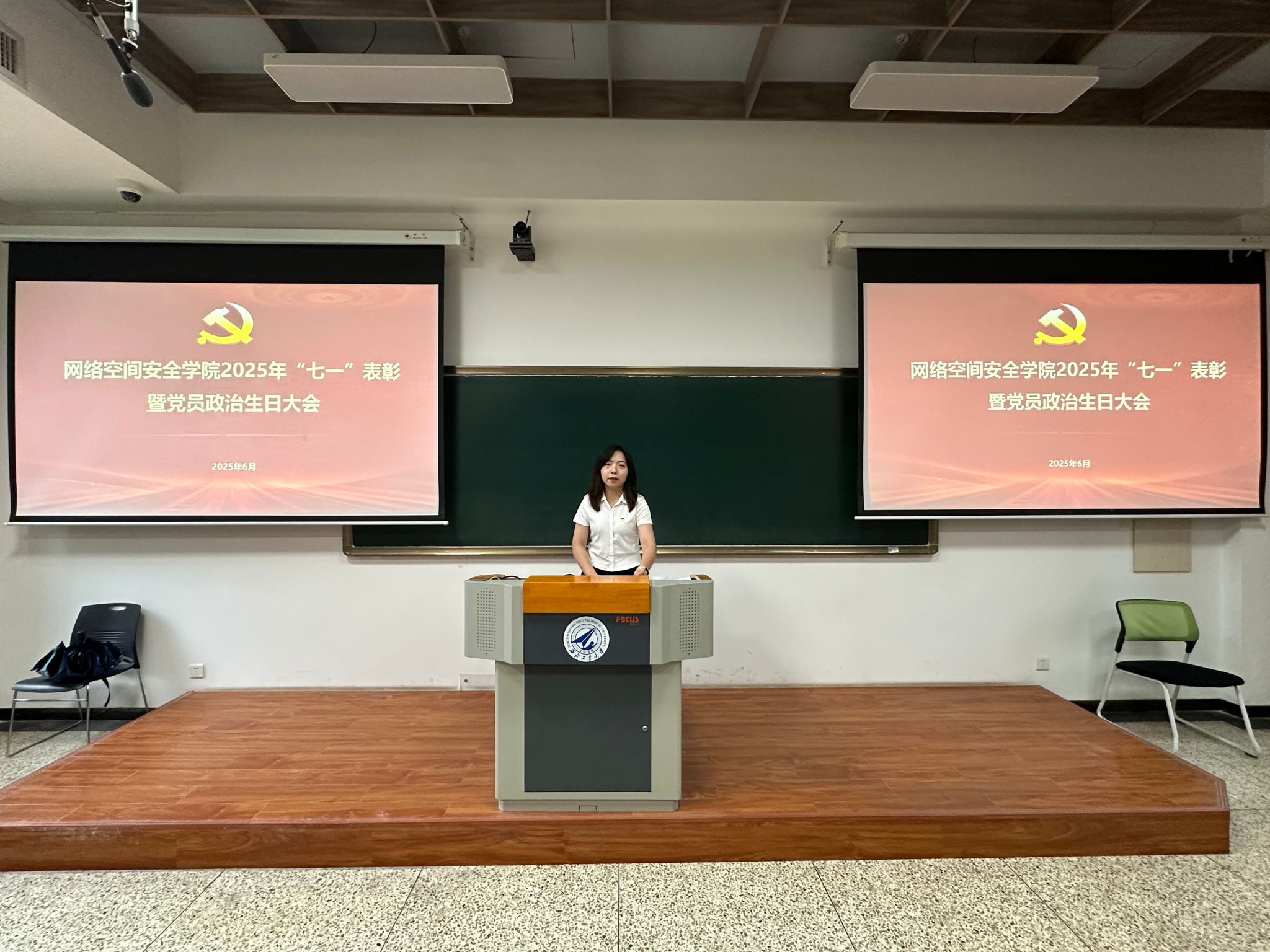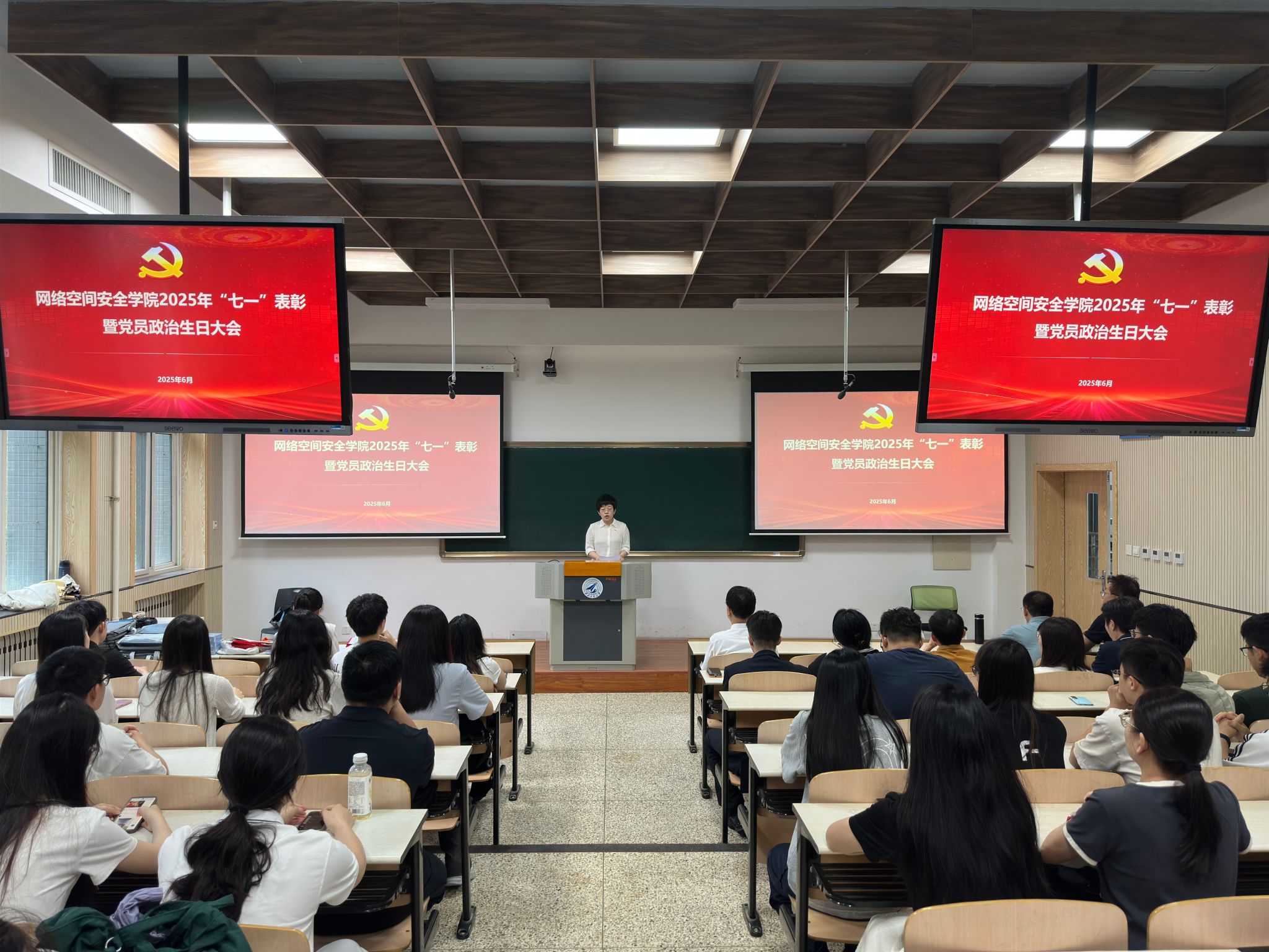 于2025年6月30日上午在长安校区隆重举行“七一”表彰暨党员政治生日大会。学院党委委员、受表彰个人和集体以及师生党员代表参加了此次大会,大会由学院党委副书记杜瑶主持。